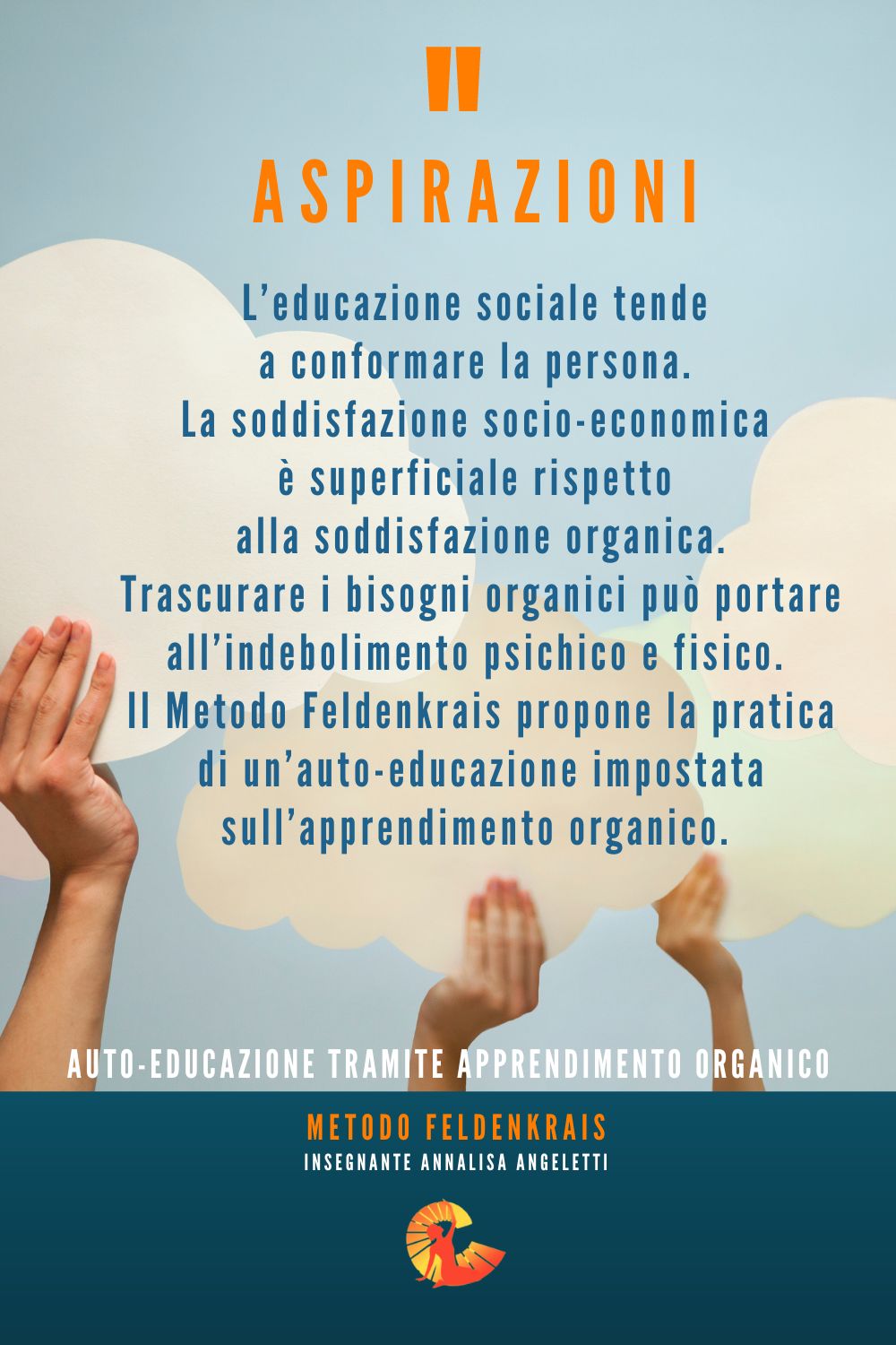 La soddisfazione socio-economica è superficiale rispetto alle aspirazioni organiche. L’educazione sociale tende a conformare la persona. Trascurare i bisogni organici può portare all’indebolimento psichico e fisico. Il Metodo Feldenkrais propone la pratica di un’auto-educazione impostata sull’apprendimento organico.