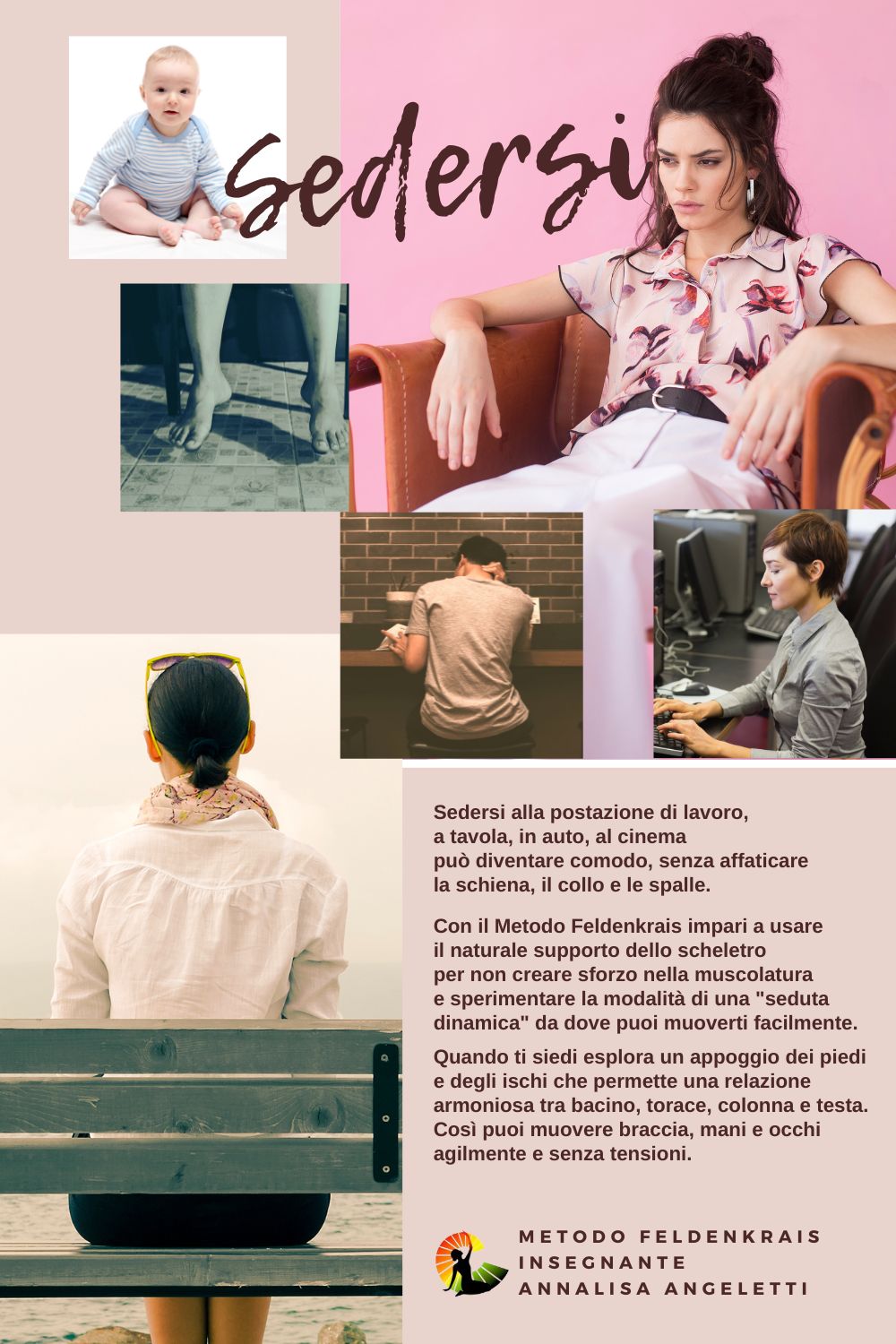 Sedersi alla postazione di lavoro, a tavola, in auto, al cinema può diventare comodo, senza affaticare la schiena, il collo e le spalle. Con il Metodo Feldenkrais impari a usare il naturale supporto dello scheletro per non creare sforzo nella muscolatura e sperimentare la modalità di una “seduta dinamica” da dove puoi muoverti facilmente.