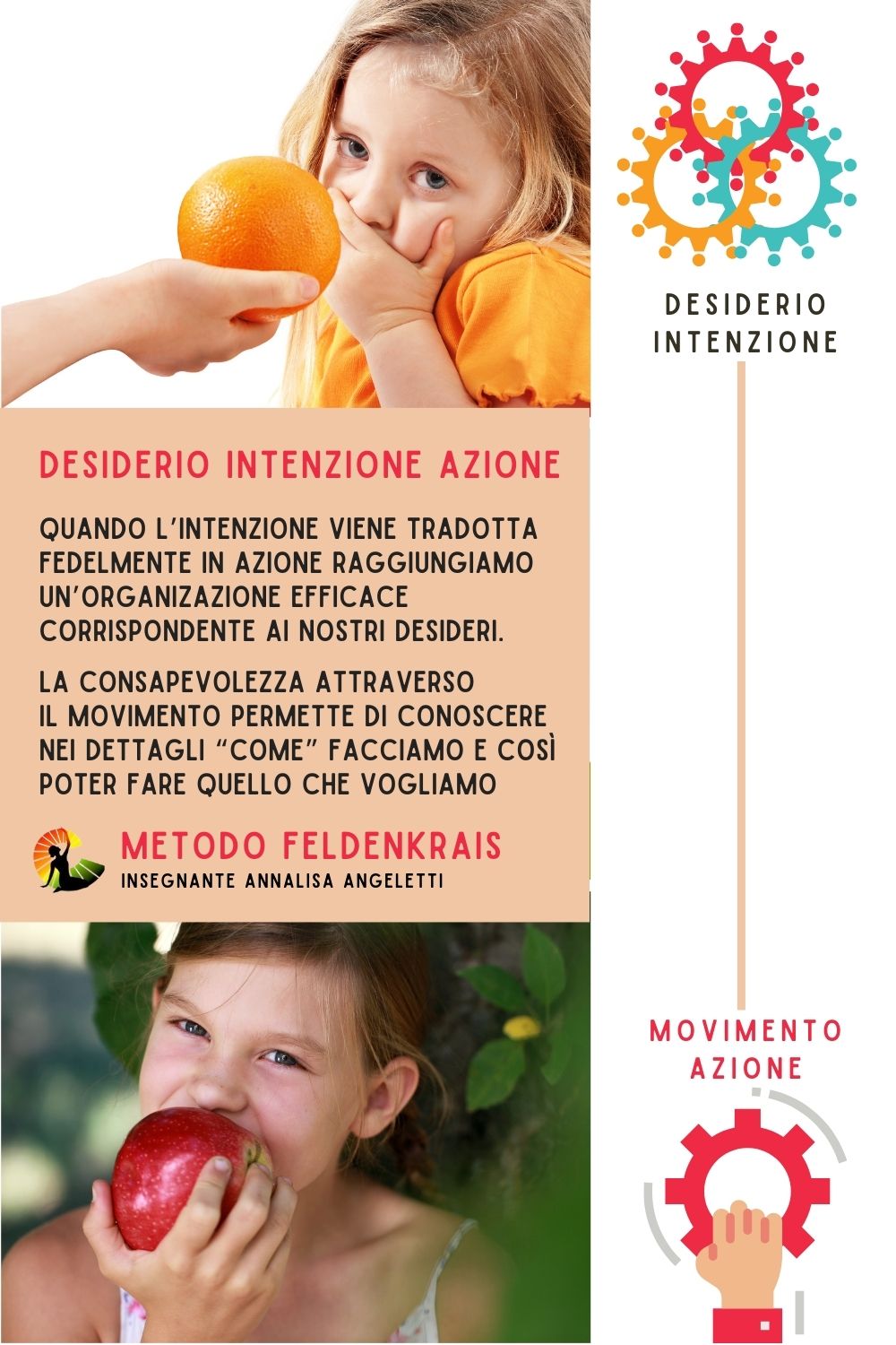 Desiderio, intenzione e azione. Quando l’intenzione viene tradotta fedelmente in azione raggiungiamo un’organizzazione efficace corrispondente ai nostri desideri. La consapevolezza attraverso il movimento conduce a conoscere nei dettagli “come” facciamo e così a poter fare quello che vogliamo.